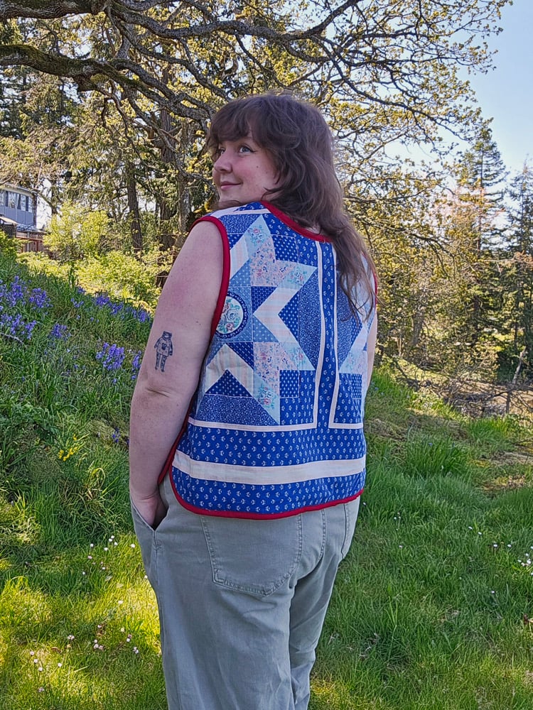Great over a dress or sweater, but also a stand out on its own! This perfect, lightly quilted tabbard has little popper closures on the side, to keep it in place.